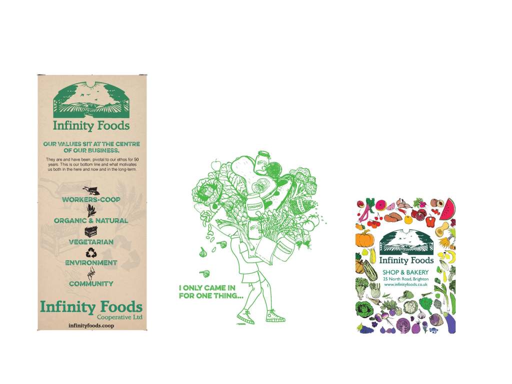 These are just a few of the projects I have worked on for Infinity Foods Shop & Bakery.