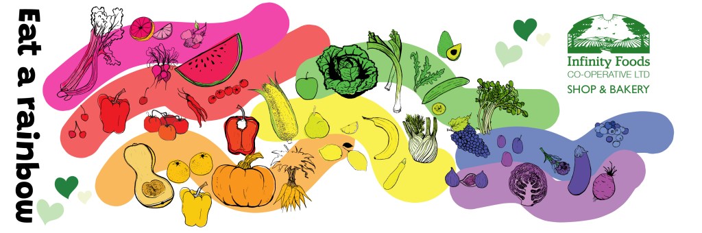 Eat A Rainbow was a healthy food campaign for Infinity Foods Shop in Brighton.